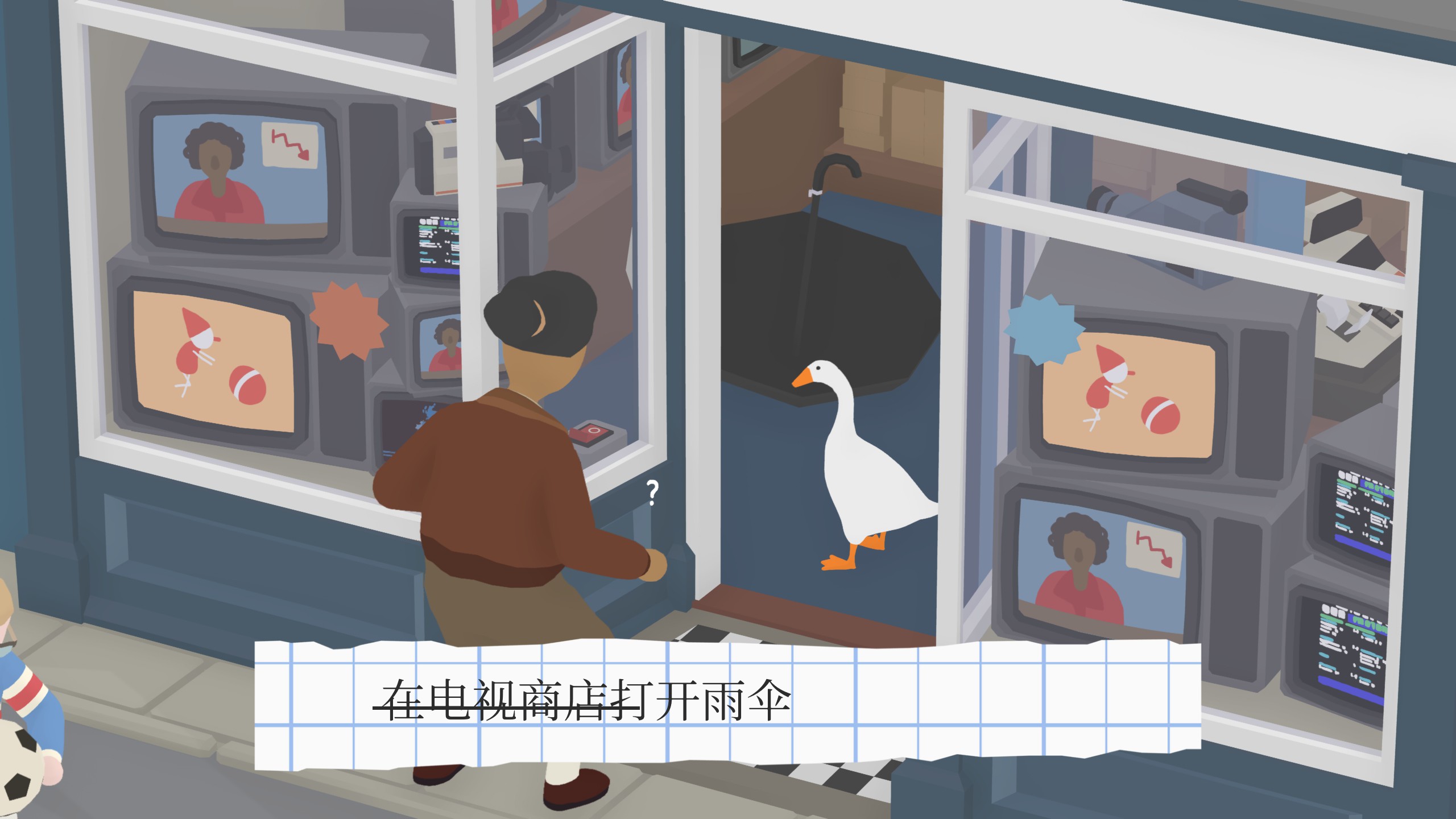 在电视机店里打开一把伞。