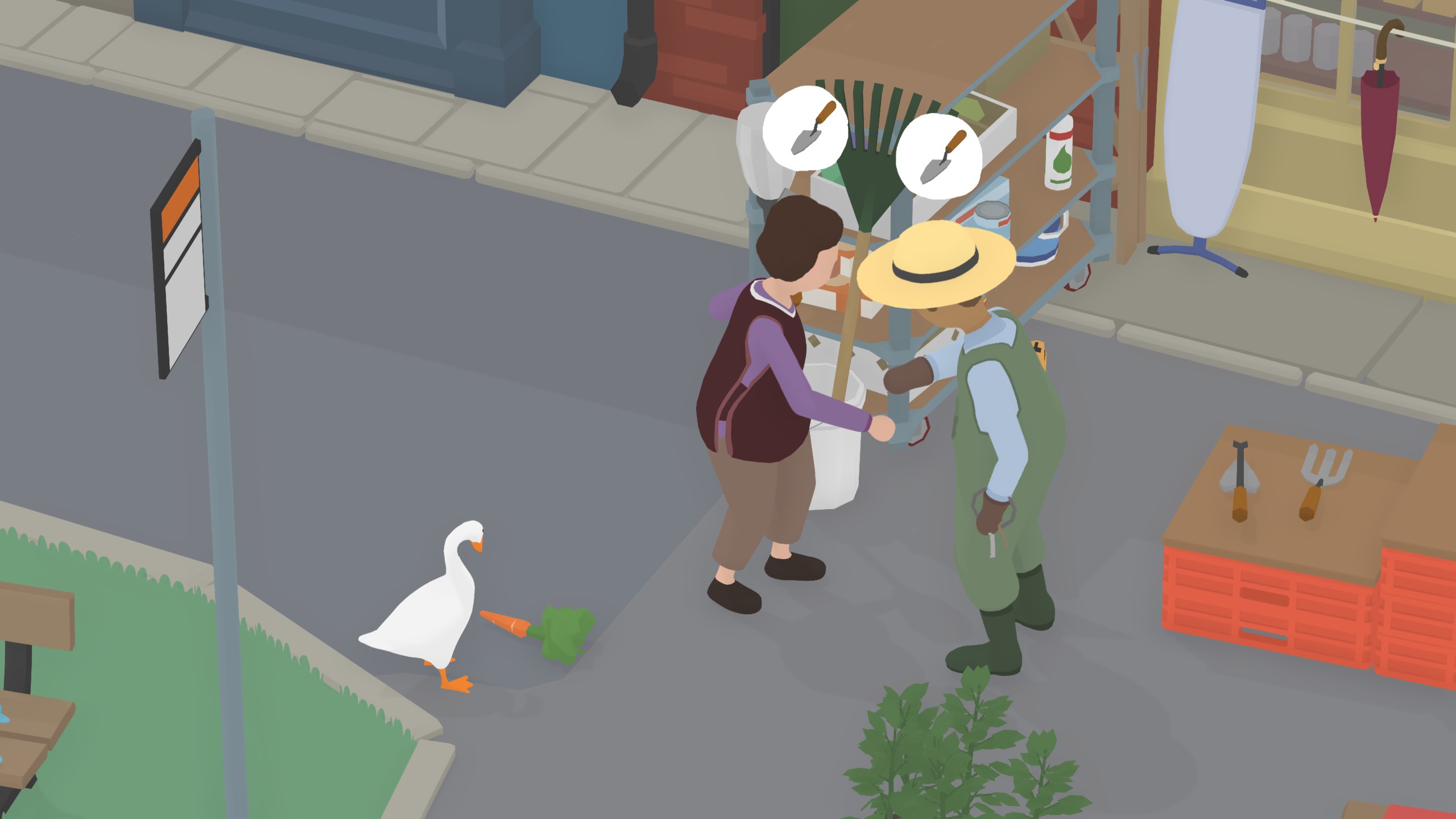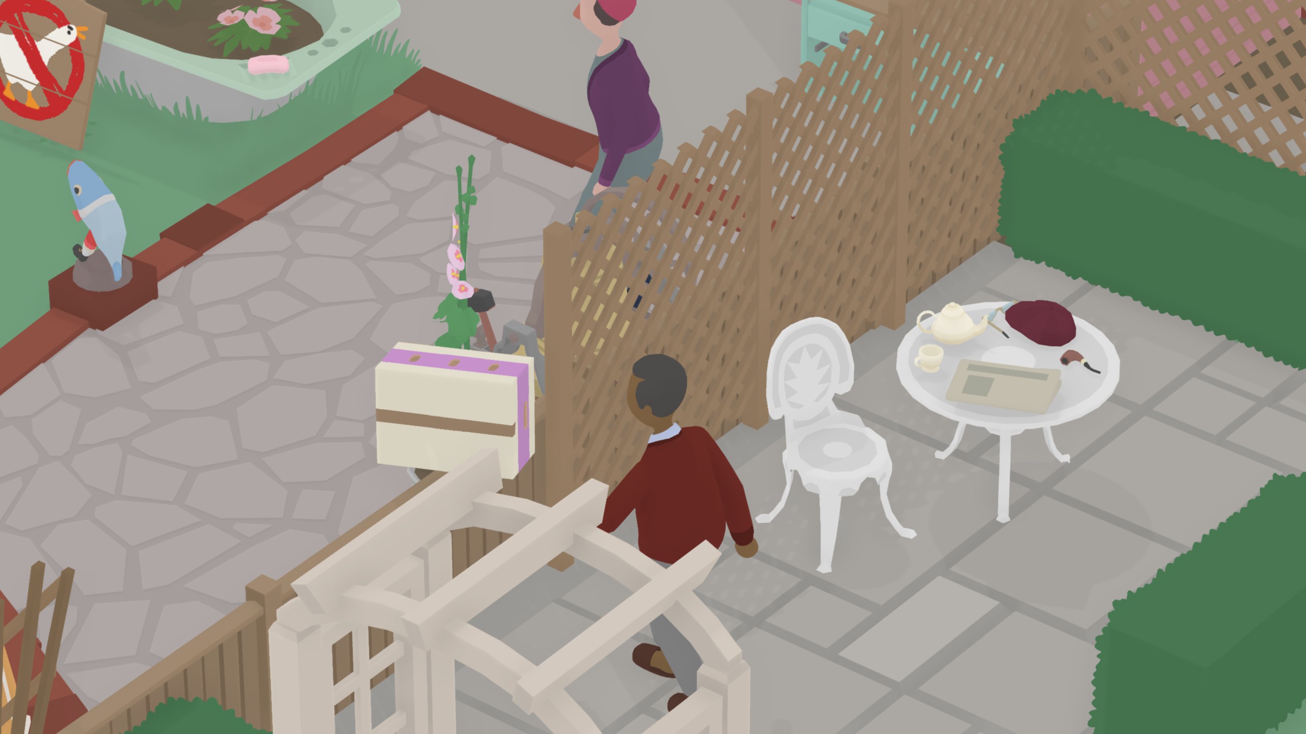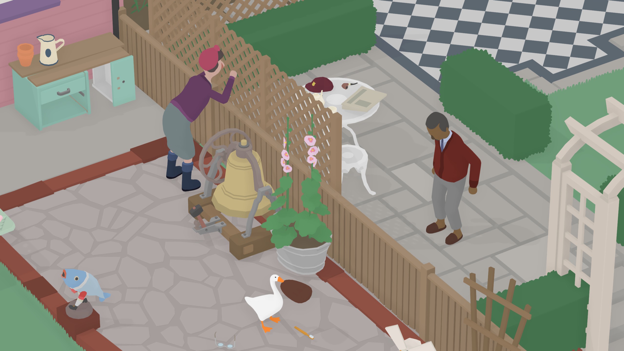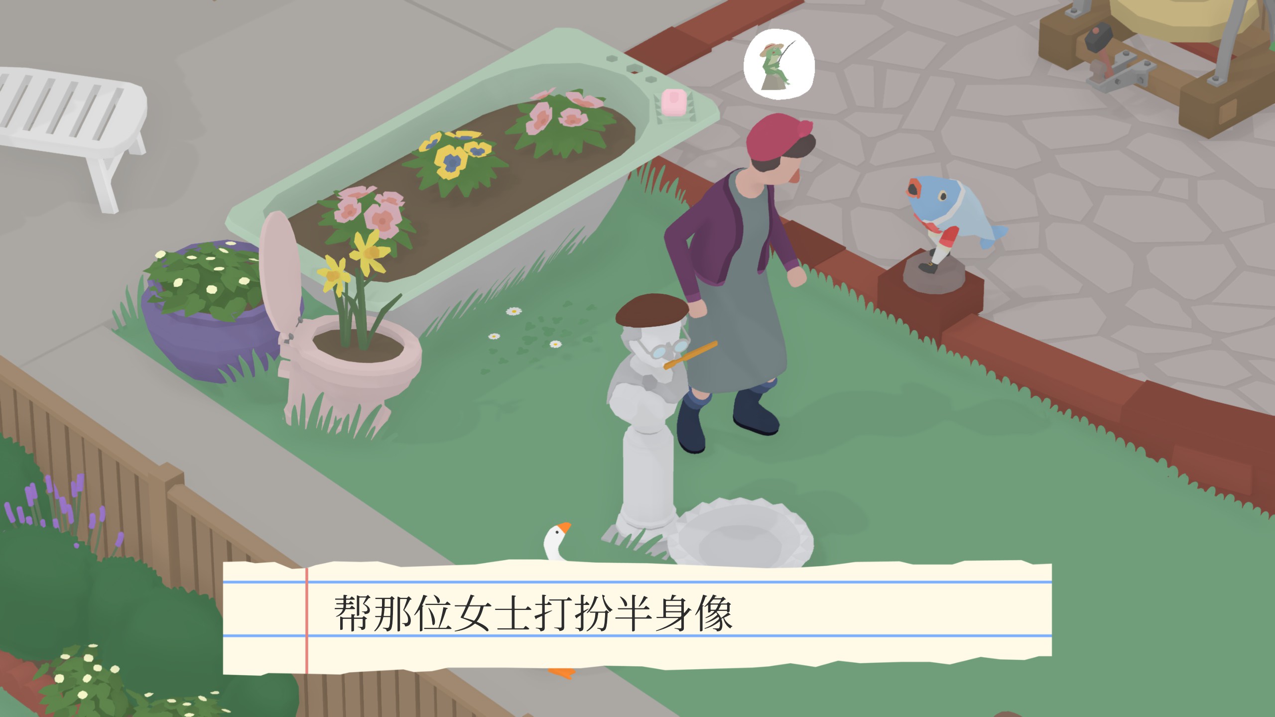 *让园丁锤到大拇指 完成大部分任务后,园丁会设立禁鹅指示牌,在园丁挥锤的时候叫一声即可。