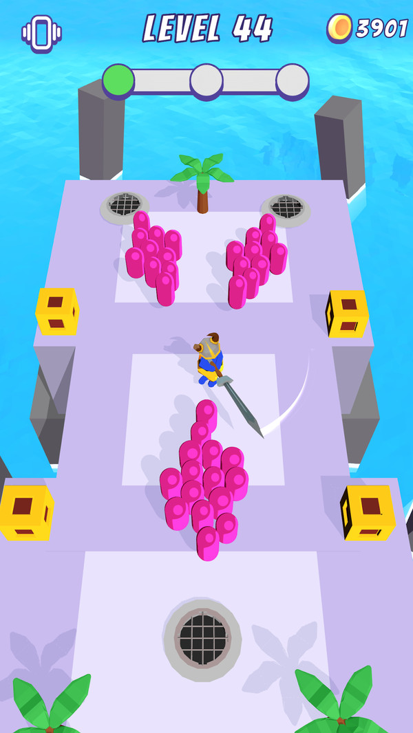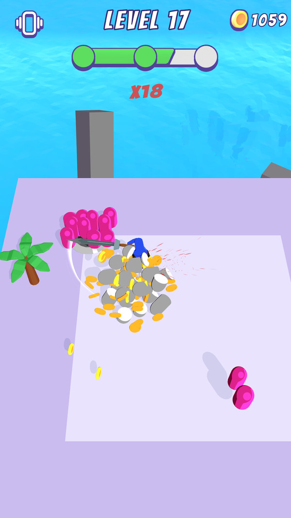 因此玩家不用担心持续的旋转会切割不到敌人,只要没有达到关卡的要求就会不断的有敌人出现在场中。