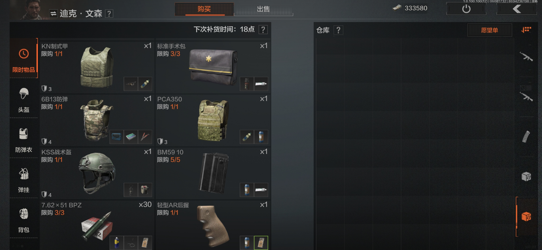 不同于其他联络人只有固定贩售的物品,迪克·文森这里每天6点、12点、18点会定时刷新限时的可兑换物品,有可能刷出其他联络人处无法兑换的物品,比如5~6级防弹的防具,推荐大家平时多关注下,不要错过“捡漏”的机会。