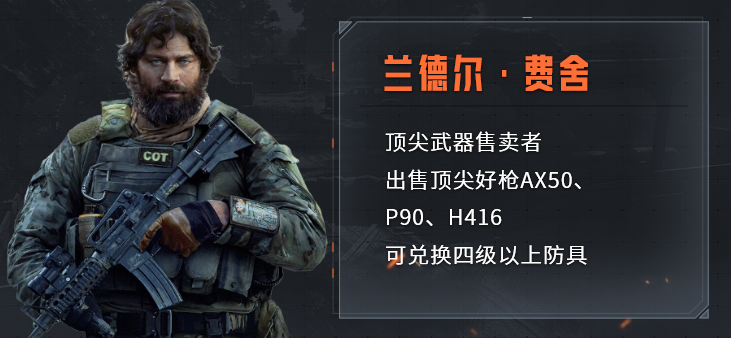 兰德尔·费舍的商店中卖的枪械可以说是暗区中最顶尖的一批好枪,比如超高射速的P90冲锋枪;使用12.7×99毫米弹药、威力巨大的AX50栓动步枪等等。这些好东西自然价格不算便宜,而且想要让它们发挥全部威力,大多需要有针对性地改装一番。而除了武器之外,4~5级防护的头盔和防弹衣、入门级的耳机、更高级的多功能镭指也都是值得先锋们入手的好东西。