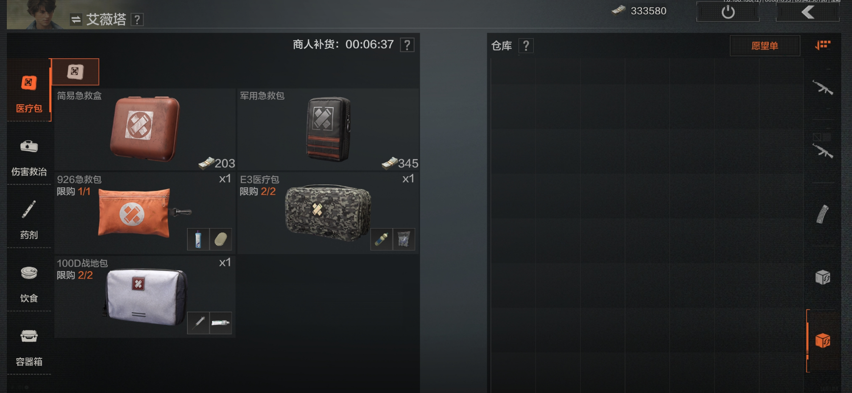 艾薇塔是暗区中唯一出售容器箱的联络人,这些容器箱分为枪械、防具、杂物、食物、医疗、扩展容器箱等多个类型,在仓库中激活后即可拓展仓库空间,存储对应类型的物资。