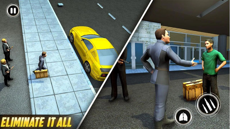 3D风格的画面,简单的操作玩法,用你的狙击枪击毙那些黑衣匪徒;
