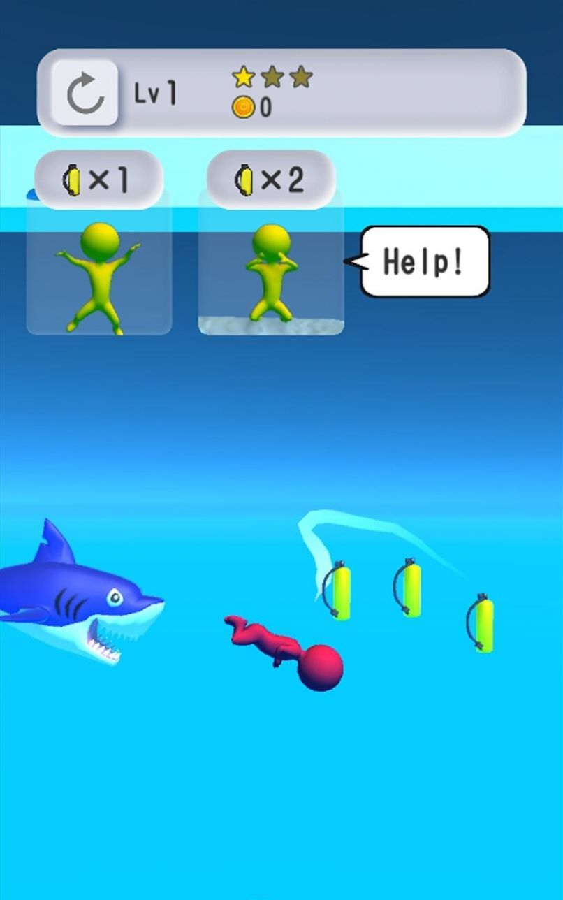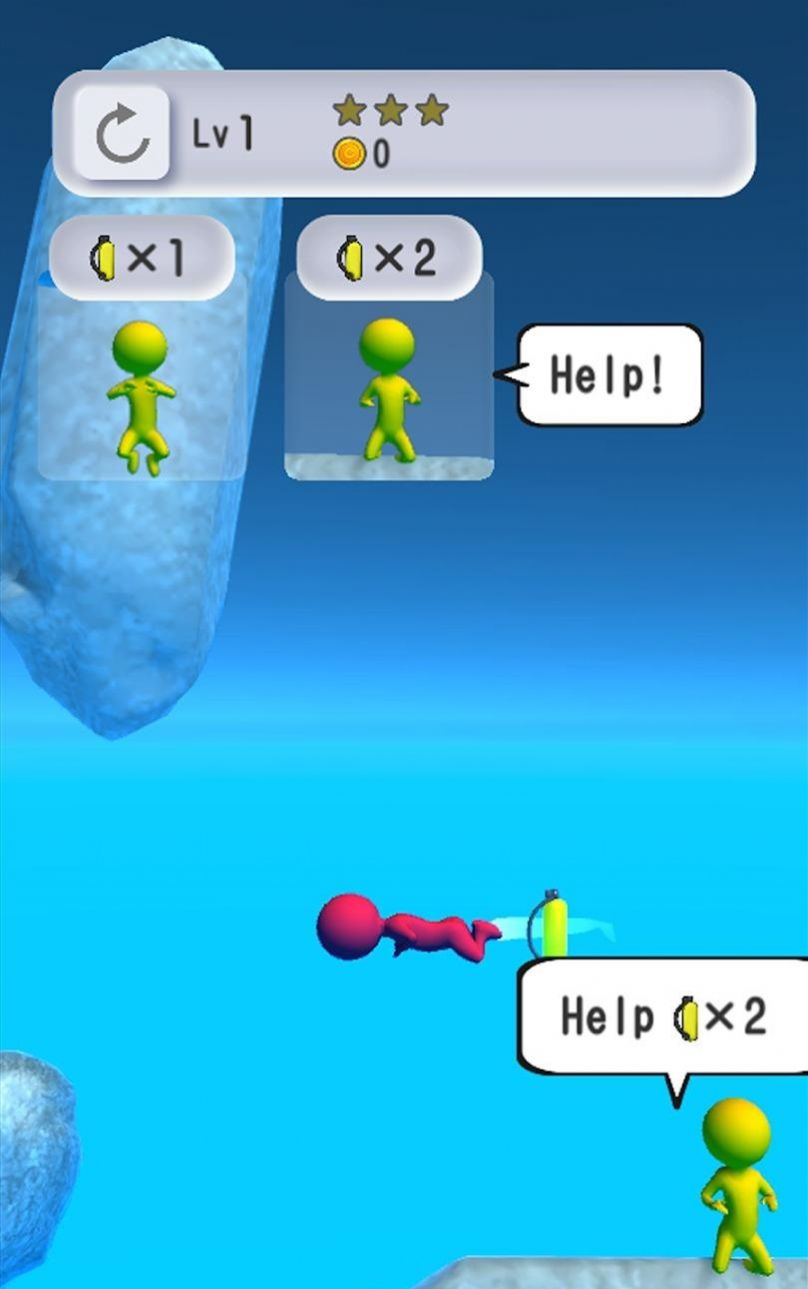 帮助他们摆脱危险。你能够通过敏捷的动作获取氧气瓶,在救援的同时还能收集更多金币和星星奖励。