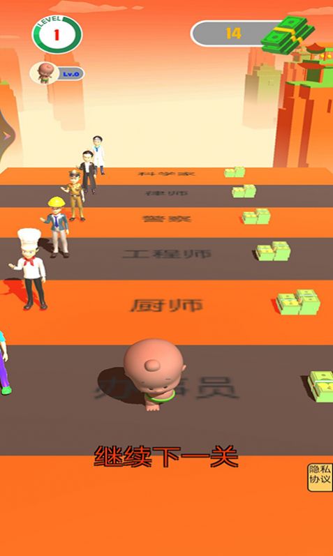 无敌打工仔游戏是一款非常有趣的跑酷对战游戏,每次都会遇到不同的对手,在相同的场地中竞争,争取获得最佳成绩。成功的机会很大,不论面对什么挑战都能完成,因为这样赢得的机会最多。只要你的手速足够快,就能迅速冲刺到终点。