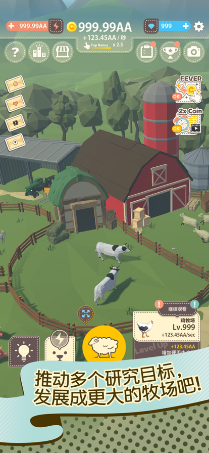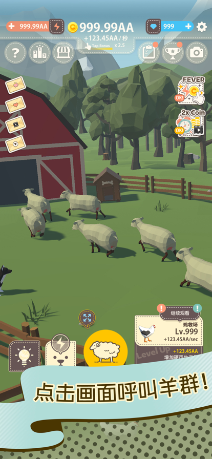 增加羊只赚取硬币,还可以增加牧场自动收集硬币!