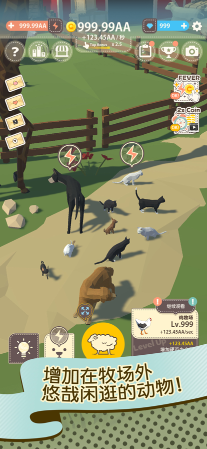 而且只要开拓容纳新动物的牧场,就能够自动收集硬币!