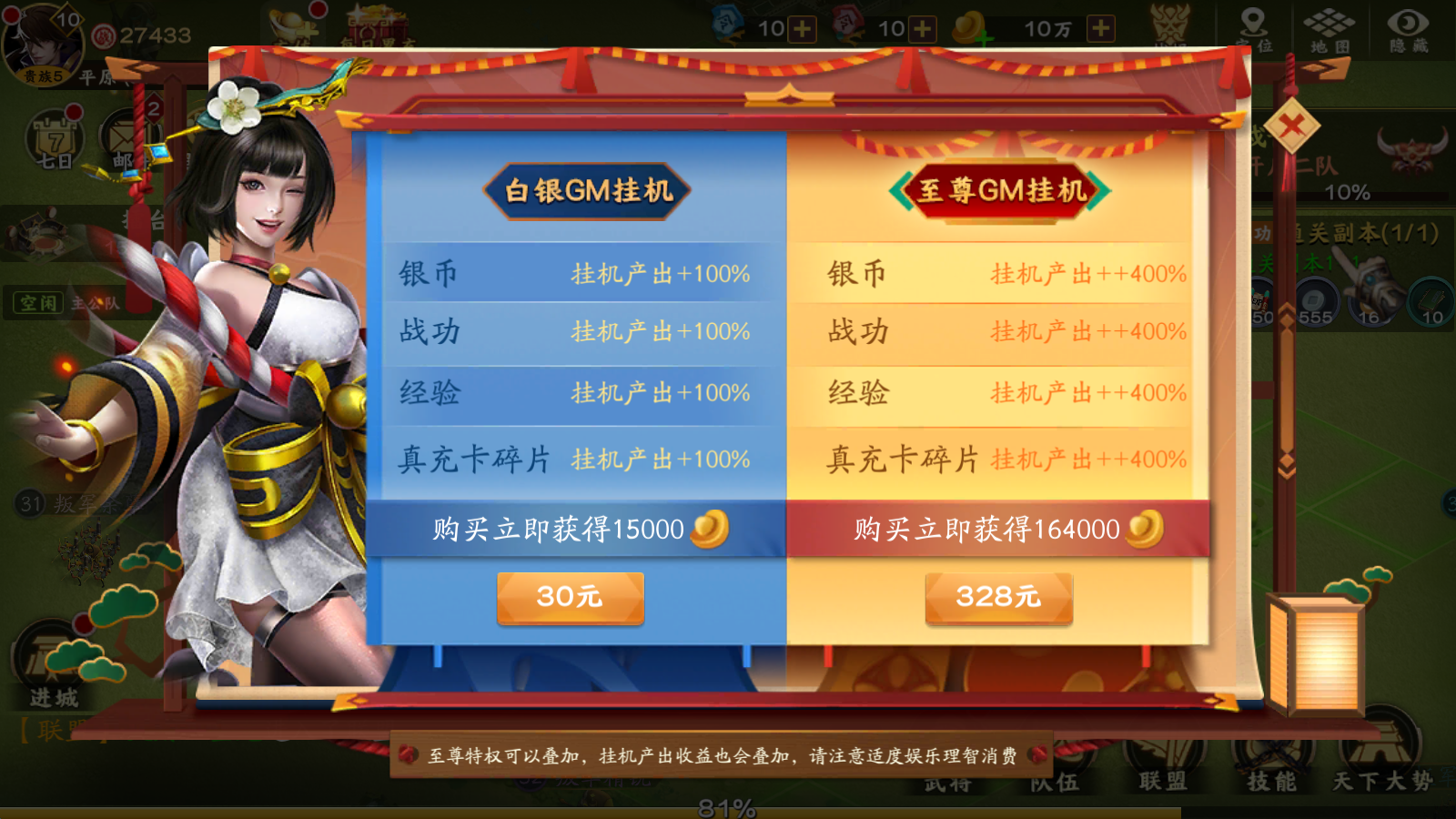 ★GM级BUFF登场,直接提升各种百分比,征战无忧