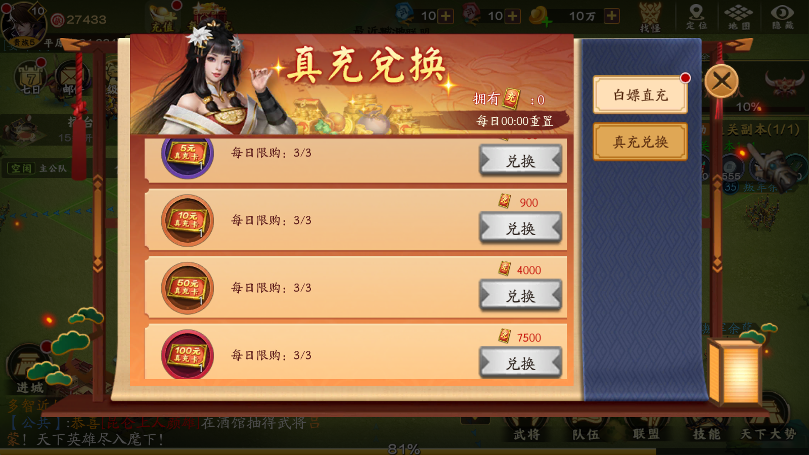 ★每日登录送100元真充卡, 任务 、 关卡 、 挂机 产出大量充值卡碎片,可随意兑换真充卡