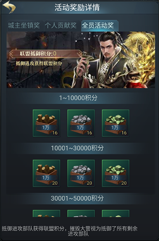 参与活动后匈奴大军就会进攻防守城池,联盟的成员就可以派兵支援,共同进攻匈奴大营。抵御的匈奴波数越多获得奖励越丰富。