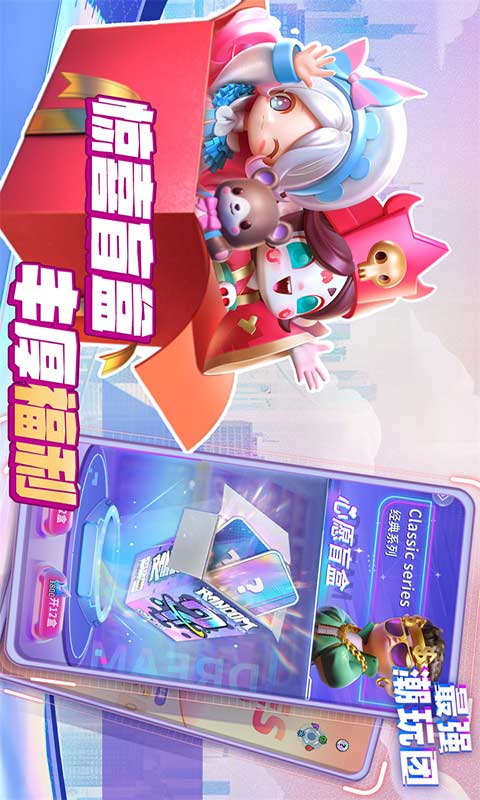 玩家运用精湛的技巧和才智,搜集以盲盒形式推出的潮玩角色,组建一支与众不同的潮玩队伍。