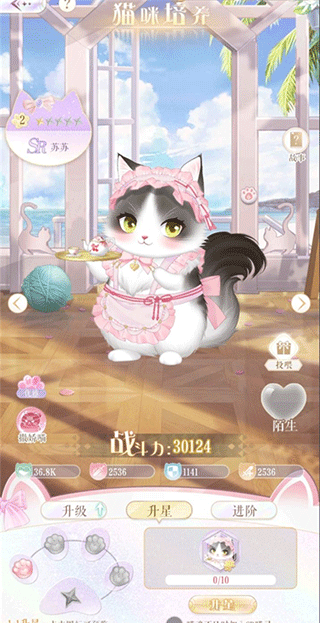 猫咪可以通过升级,升星和进阶三个方式进行养成,提升战力,升级需要消耗喵币,可以通过小镇经营和猫咪演出应援获得。