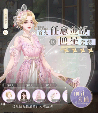 也可以参与首充礼包哦,可以直接获得一整套四星时装,后续两天还可获得时装十连抽和猫咪十连抽。
