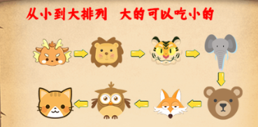 猫可以吃龙,其他就是食物链上的算法,两个相同的是互相消除。