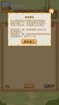 眼力大挑战是一款轻松的益智游戏。在游戏中,玩家需要在规定时间内凭借自己的观察力找出指定物品,成功完成后会得到丰厚奖励。
