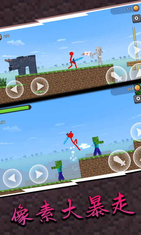 极具创意的 动作 类 战斗游戏 ,你将扮演火柴人王者,在像素世界中独自冒险。游戏中提供了多种武器供玩家使用,并且还有许多皮肤可以选择,各种玩法等待你的探索。