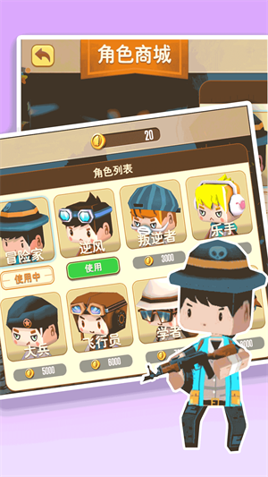 《像素战场》模拟器,一款手机上的战地射击游戏。初始时你只是一名小兵,通过招募更多队友、解锁枪械武器、提升装备来壮大你的队伍,最终战胜对手,赢得对决,成为最后的胜者。