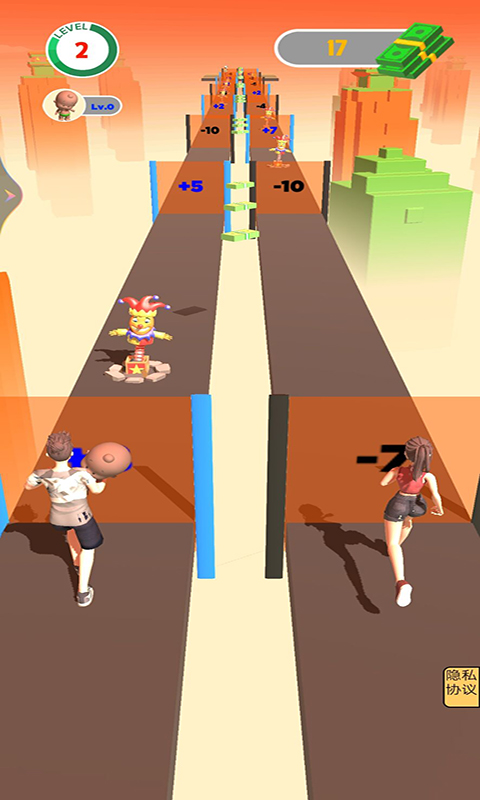 趣味休闲跑酷玩法,操作一个可爱的胖子,在跑酷的过程中不断减肥