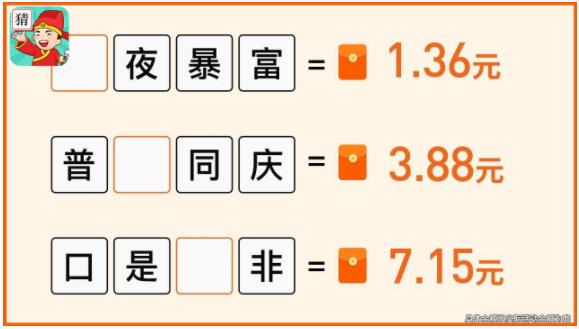 1个成语5毛钱,猜得多赚得多,每天10分钟。