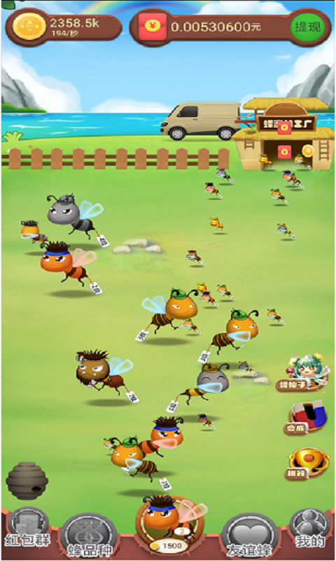 飞跃蜂人园,一款专注于 培养 蜜蜂的小游戏,玩家可以经营自己的蜂人园,培养各种蜜蜂,通过丰富的蜜蜂解锁 组合 升级,完成采蜜任务赚取更多收益并兑换红包。