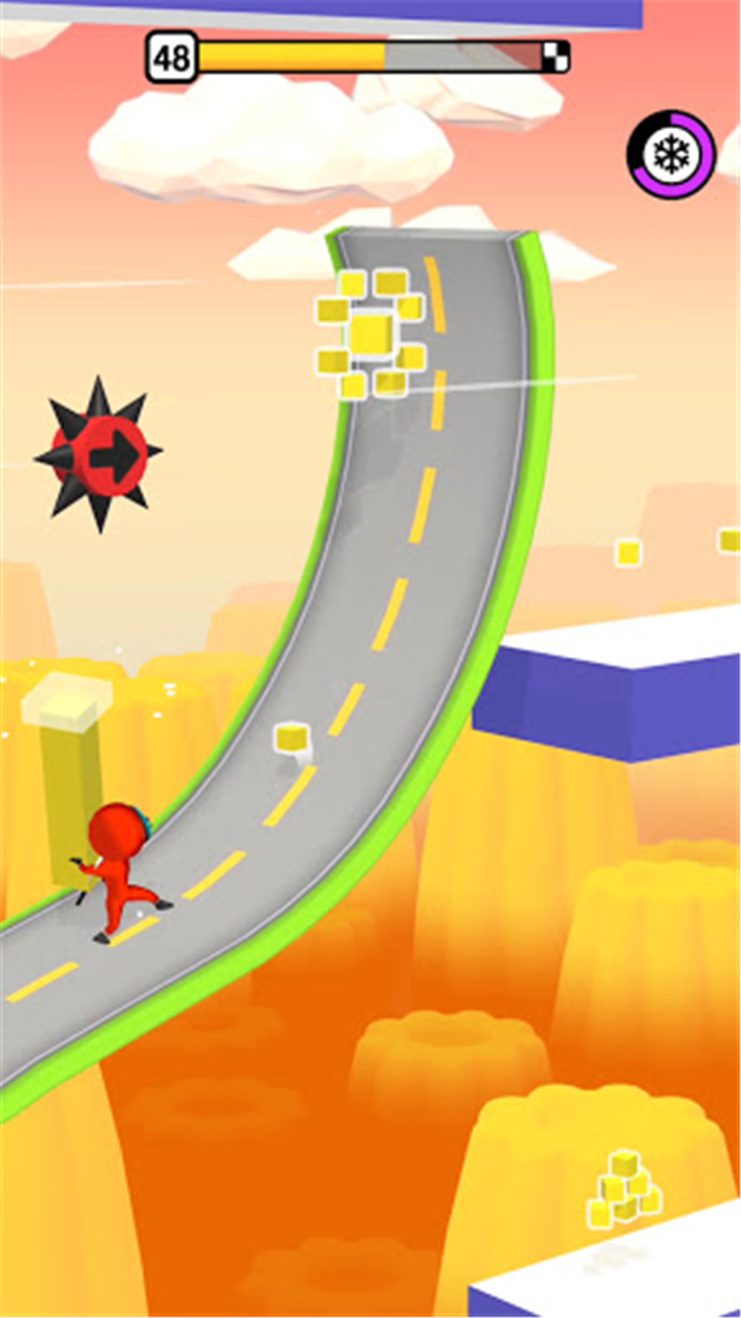 你需要避开陆续出现的障碍物,才能继续前进,继续挑战。
