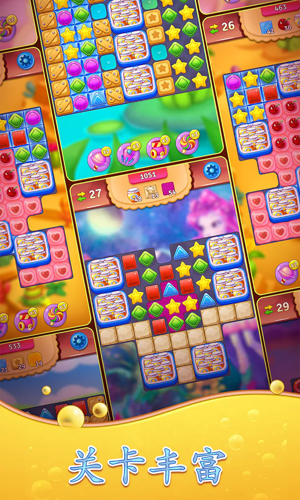 使用多种道具帮助你更快速地完成任务,如糖果炸弹、彩虹糖果等。