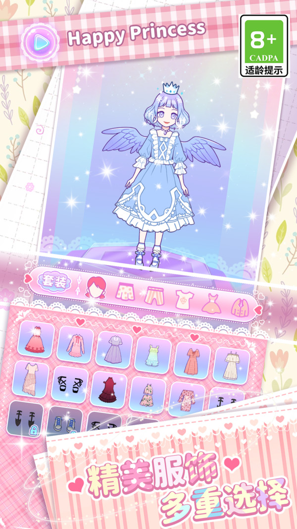 这是一款 针对女性玩家设计的 休闲 换装游戏 ,主要玩法是收集服装,自由搭配喜爱的造型。游戏中还包含拍照功能,能够随时记录你所搭配的造型,甚至场景中的小装饰也可以一并保存为单独的方案。你可以随时将保存的照片分享给你的朋友们。