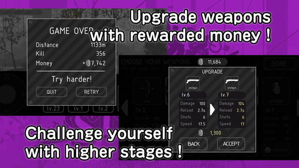 火柴人神枪手(Stickman Striker)是一款火柴人动作射击游戏,游戏中更换弹匣的时机非常关键,因为得分依据是角色行走的距离,而且拾取金币也有时间限制,迫使玩家不断前进。