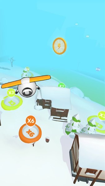 1.卡通的游戏风格,简单的操作,丰富的关卡,操纵滑翔机在天空中飞行;