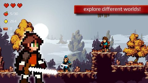 苹果骑士 这是一款冒险手游,怀旧的画面带给玩家重温经典游戏机的快乐。在游戏中,玩家必须不断击败敌人以收复失地,重建王国。你能否一直坚持下去?苹果骑士期待你的加入。