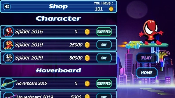 这是一款非常有趣的蜘蛛侠系列游戏。游戏中提供了特别且具挑战性的新冒险。您需要使用滑板来应对这个新挑战。在这款全新的 挑战性冒险游戏 中尽可能多地获取积分,为此您必须迅速集中精力完成任务。您还可以解锁许多其他的蜘蛛侠套装。