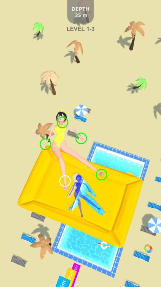 其实模拟跌落的过程非常刺激,大家在快速下落时不要移动视角,否则很容易超出屏幕范围,从而无法很好地控制人物的坠落位置,这样很危险,可能会直接掉出泳池。