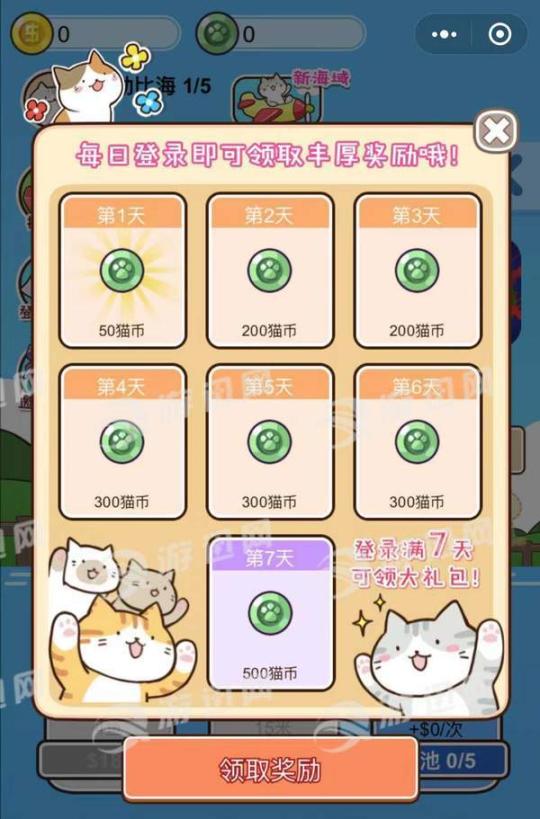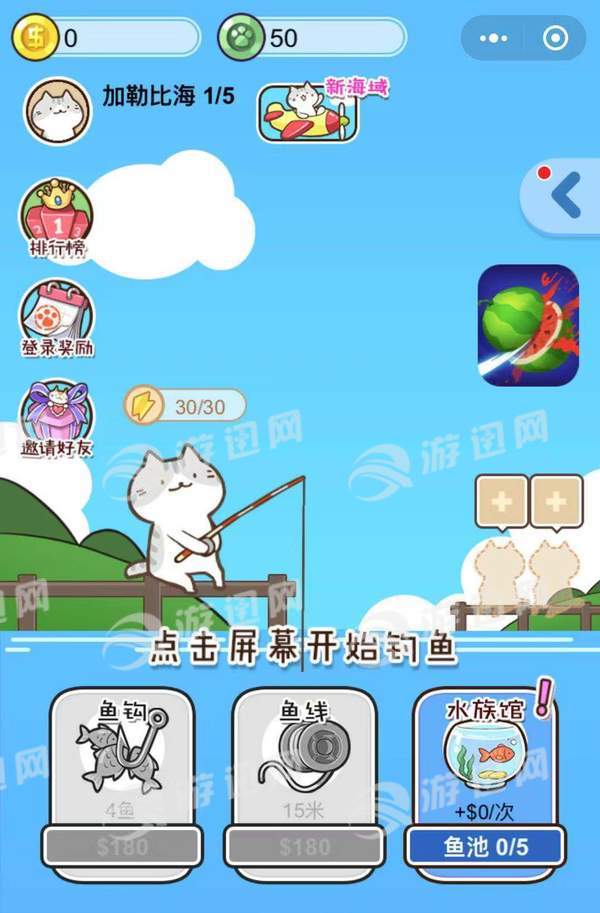 点击屏幕控制可爱的小猫继续钓鱼。