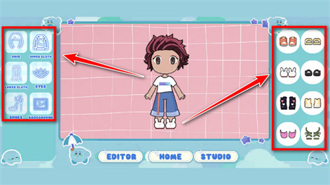 左右两边是选择换装的部位和款式,给喜欢的角色穿上衣服吧。