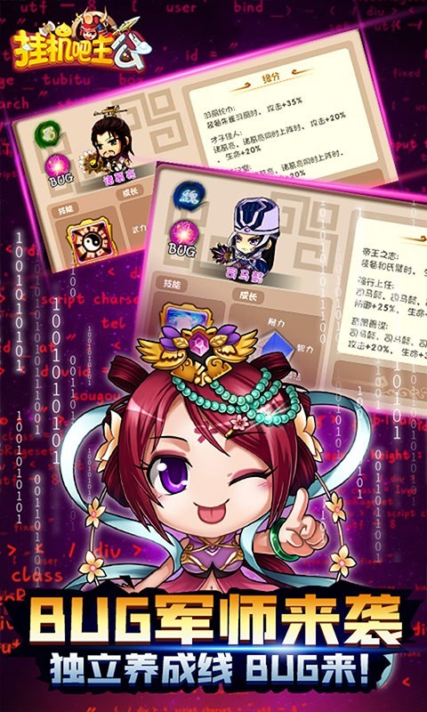 挂机吧主公全新版本发布,激爽三国卡牌对战游戏,简单回合制玩法,Q版角色形象,轻松挂机对战,策略元素丰富,趣味培养系统,特别福利版本,登录即享无限特权奖励,众多经典战役轻松体验,多种武将自由组合,组建阵容,灵活运用羁绊效果,尽情享受无尽竞技激情,这是一款非常值得一试的三国策略卡牌竞技游戏。