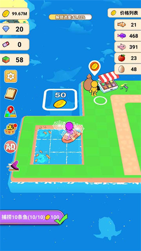 这款游戏拥有多种玩法,玩家可以建立并管理自己的渔场,从事养殖或钓鱼活动,在闲暇时种植作物,还可以在海边捡拾海货,各种有趣的游戏内容为玩家提供了更多选择。在岛上自由经营,逐步扩展成为一个大型渔业帝国。