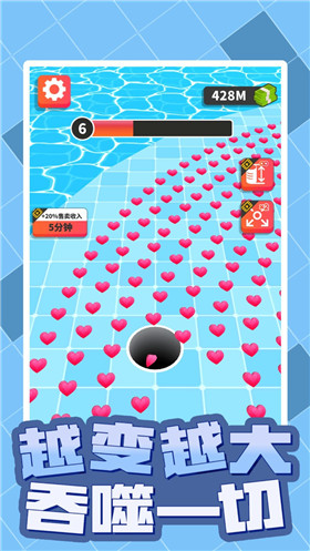 2,操作简单,只需要操纵黑洞移动吞噬所有物品,吞食的物品越多,获得的金币就越多,黑洞就会有更多升级的机会。