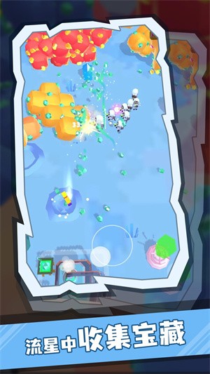 相当宽广的地图可供自由探索,流星会坠落到地面形成众多陨石,收集这些陨石能获得更多矿物。