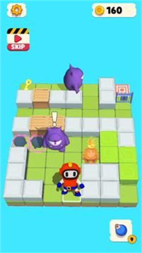 这款游戏拥有独特的炸弹机制,某些障碍物可以被炸弹摧毁,使得游戏十分有趣。在迷宫中不断探险,尽情享受这场充满炸弹的刺激之旅。