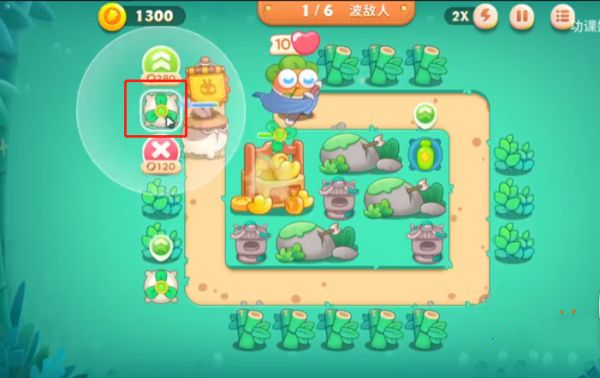 点击方格建造炮台,通过扫除左边的竹子升级瓶子。