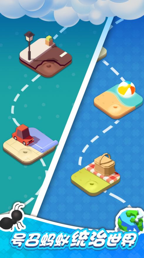 开始时你有一只蚂蚁,通过搬运来升级,参与各种有趣挑战,在游戏中指挥你的蚂蚁,吞噬一切。多样化的游戏元素让蚂蚁随着世界的演变变得更强大。不断增加蚁群的数量与实力,提升蚂蚁等级,使你的蚂蚁征服整个世界,最终创建属于你的蚂蚁帝国。