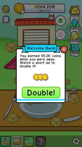 玩家可以从同一种食物中合成并进化出新的食物,食物会给玩家带来金币,玩家可以用金币来喂不同的食物。