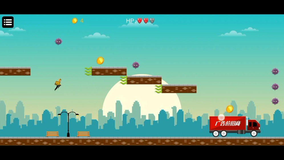 3D卡通风格,类似于之前的马里奥游戏。在游戏中,玩家扮演一名外卖员,通过奔跑将餐品送达客户手中;多样的天气系统,尽管画风看似简单,但游戏中的天气和灯光效果设计得非常用心,当然也会有许多障碍阻挡玩家前进;意想不到的挑战,比如在送餐过程中会遭遇外星飞碟的攻击,玩家需要躲避这些干扰,继续前行;游戏操作极其简便,只需用手指点击屏幕即可进行跳跃以躲避敌人的攻击,并且还有各种装备和强力道具等待玩家解锁。