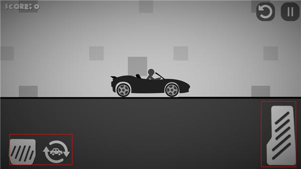 活用按钮,左边的按钮是让车减速或者后退的,右边长条的按钮是加速前进的,而有汽车标志的是让车重新从空中落下的,反复使用这三个按钮可以让火柴人受伤更多;