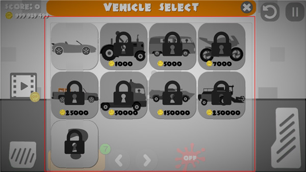 以及按黄色按钮可以选择车的款式,如果你有足够多的金币的话;