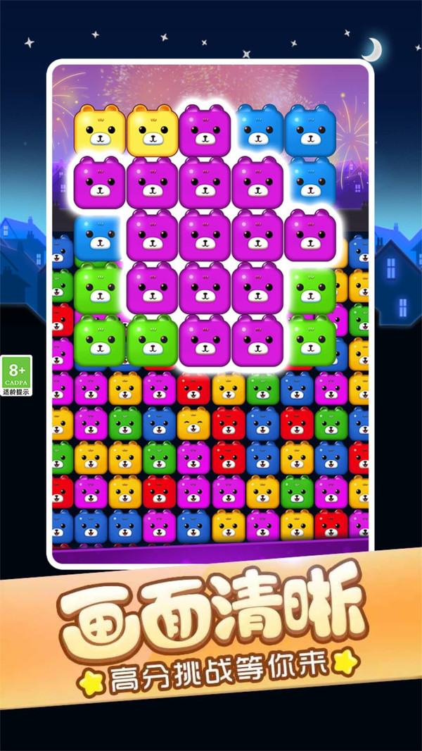 独特的碰碰消除机制,通过滑动屏幕让熊熊角色碰撞交换,实现三消得分;