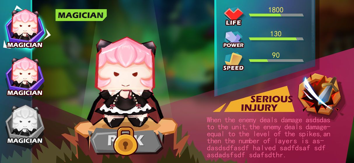 英雄角色的技能是专属的,为你的战斗阵容搭配好英雄,才可以战胜敌人。