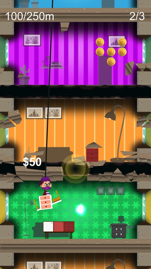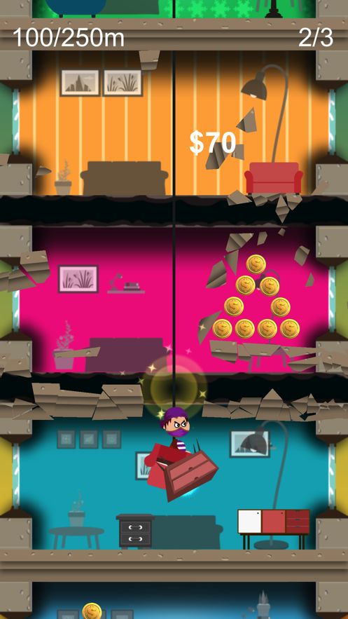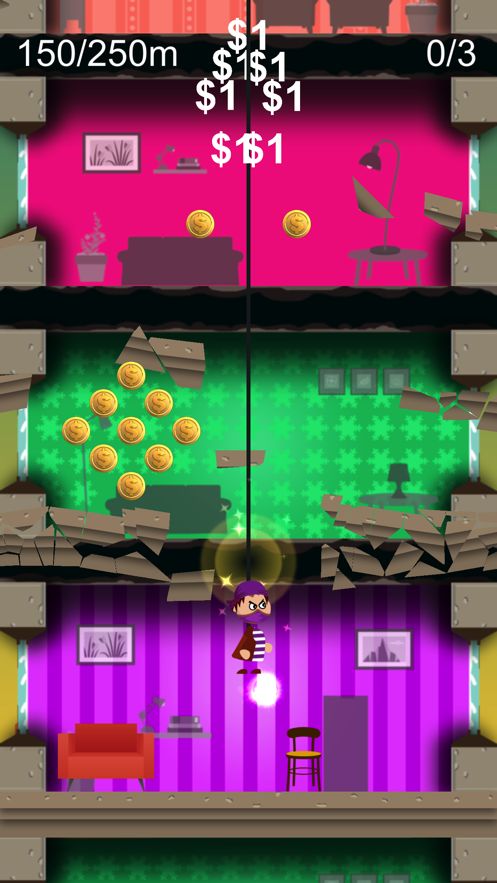 破坏每一层大楼的楼板,小心的潜入其中,想办法积累更多的分数,超越自己,创造更好的成绩出来。