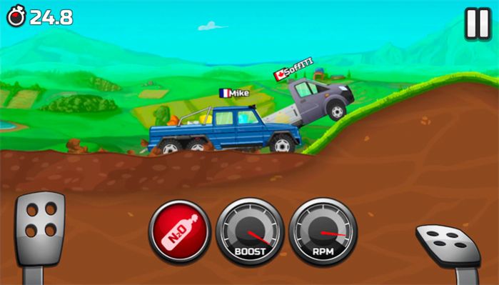 通过各种比赛获得胜利,解锁不同的车辆和赛道,成为卡车竞速之王。