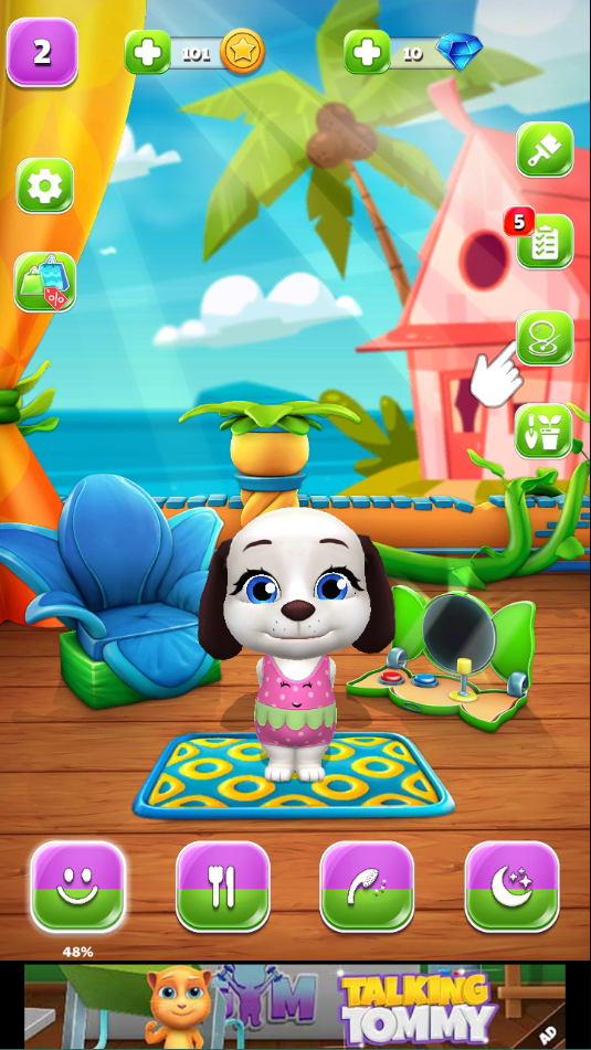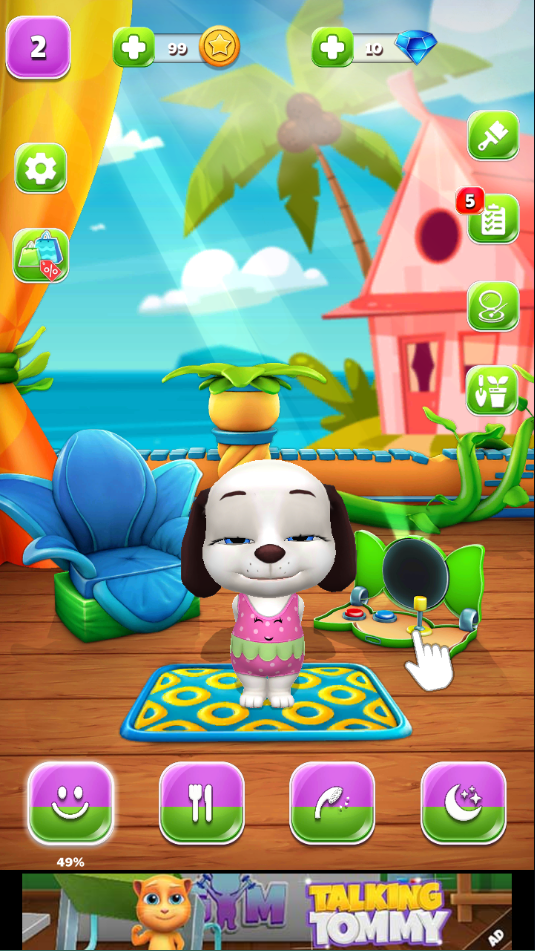 最新版本的会说话的狗Bella是一款极其有趣的宠物养育游戏,玩家能够挑选自己钟意的宠物狗来养育,这只神奇的虚拟生物将成为你梦寐以求的专属虚拟狗狗。你的新忠诚伙伴每天都期待着与你相伴并同你嬉戏。你可以随时与会说话的狗互动,精美的游戏画面定会让你沉浸其中。你的任务就是照料它,它将成为你永恒的忠实朋友。如果你是狗游戏爱好者,那么会说话的狗Bella绝对适合你。